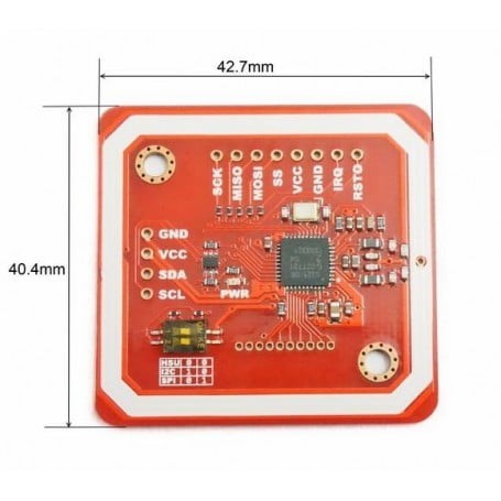 ارتباطات میدان نزدیک (Near Field Communication) به اختصار NFC استانداردی برای اسمارت فونها و دستگاه های مشابه برای ایجاد یک ارتباط رادیویی با یکدیگر از طریق تماس با هم یا قراردادن آنها در فاصله نزدیک معمولا کمتر از چند سانتی متر میباشد.هسته اصلی این ماژول NFC تراشه NXP PN532 بوده که یکی از معروفترین تراشههای تکنولوژی NFC میباشد.در این ماژول پین های NXP532 IO روی ماژول گسترش داده شده تا کاربران به آسانی بتوانند آز آن استفاده کنند. ارتباط دیتا بصورت پیش فرض از طریق I2C انجام میگیرد ولی کاربر بنابر نیاز خود میتواند از پروتکلهایی نظیر UART یا SPI نیز در این ماژول استفاده کند. شما به سادگی میتوانید این ماژول را به هرنوع میکروکنترلری متصل نموده و این پروتکل را راه اندزای و استفاده نمایید.